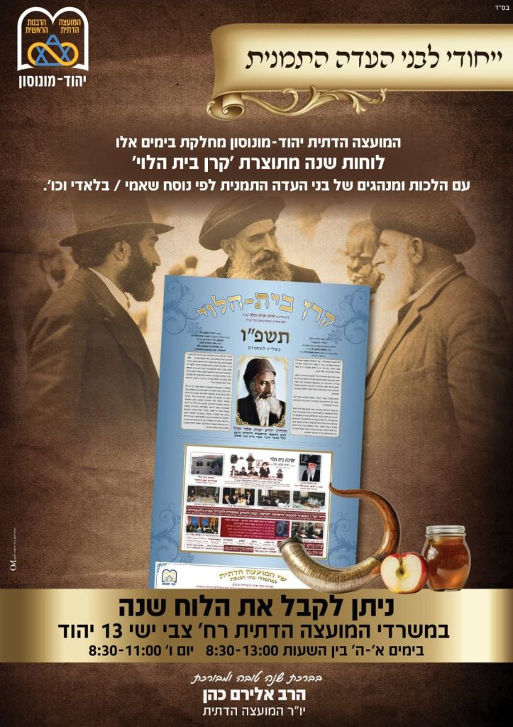 המועצה הדתית יהוד-מונוסון ביוזמה ייחודית: חלוקת לוחות שנה מיוחדים, המותאמים להלכות ולמנהגים של בני העדה התימנית – הן לפי נוסח שאמי והן לפי נוסח בלאדי....