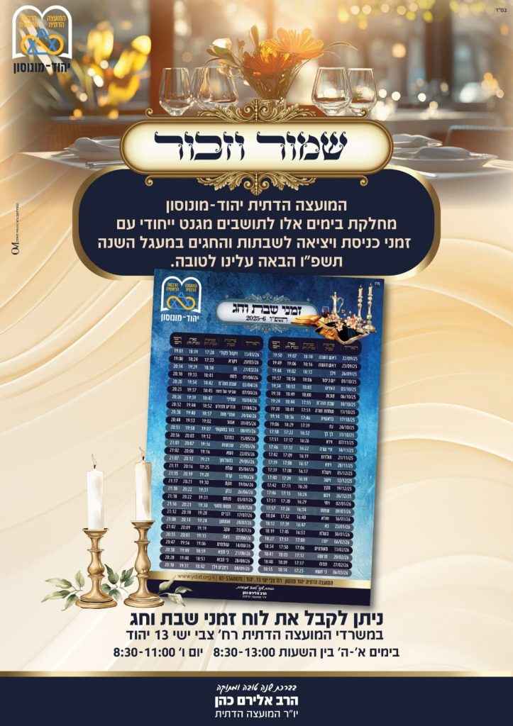 לקראת השנה החדשה, המועצה הדתית יהוד-מונוסון ביוזמה מיוחדת: חלוקת מגנטים ייחודיים לכלל הציבור, הכוללים את זמני כניסת ויציאת השבתות ואת חגי ישראל לשנת ת...